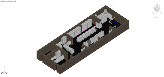 3D вид планировочного решения с расстановкой оборудования (AutoCAD).